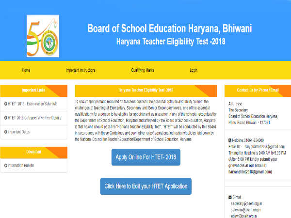 अगर आप हरियाणा टीचर एलिजिबिलिटी टेस्ट (HTET 2018) के लिए आवेदन करना चाहते है तो इन स्टेप्स को फॉलों करें-