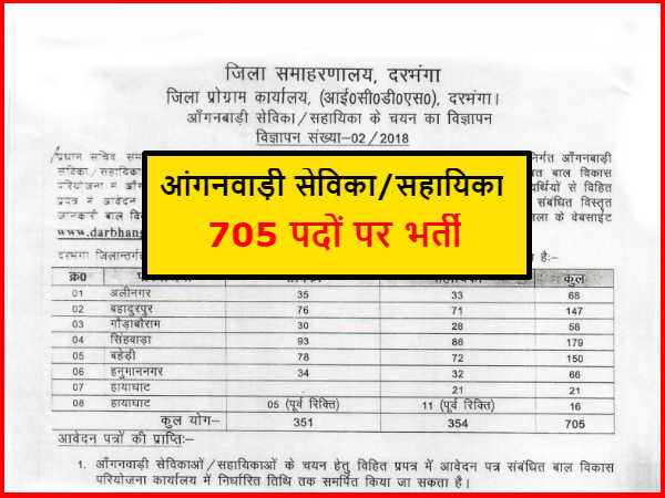 ऑफिसियल जानकारी इस प्रकार (ICDS Darbhanga Anganwadi Recruitment 2018)-