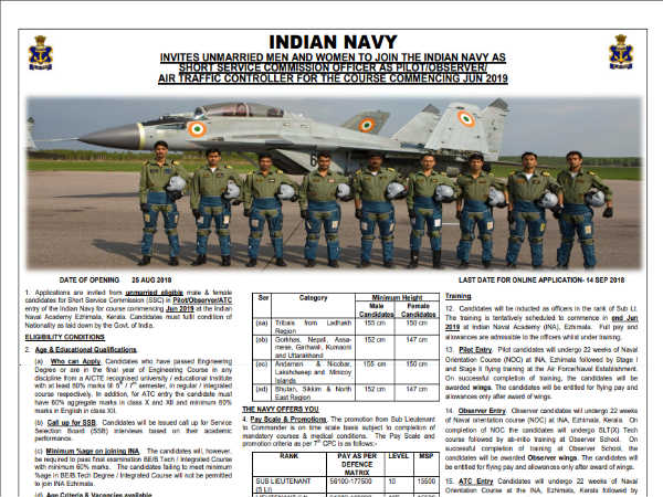 ऑफिसियल जानकारी इस प्रकार है (Indian Navy Recruitment 2018)-