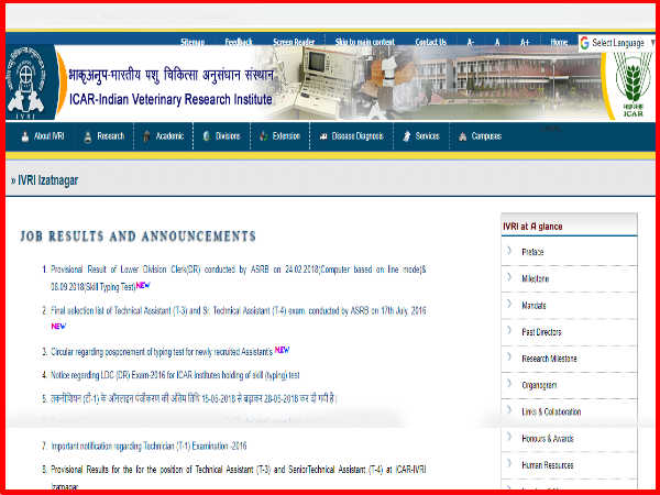 ऑफिसियल जानकारी इस प्रकार (IVRI Izatnagar Recruitment 2018)-