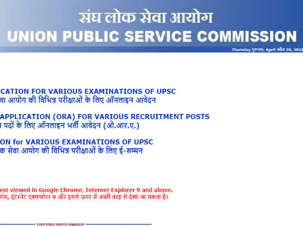 उसके बाद ONLINE APPLICATION FOR VARIOUS EXAMINATIONS OF UPSC पर जाएं।