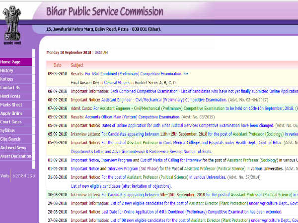 सबसे पहले बिहार लोक सेवा आयोग (BPSC) की ऑफिसियल वेबसाइट http://bpsc.bih.nic.in पर जाएं।