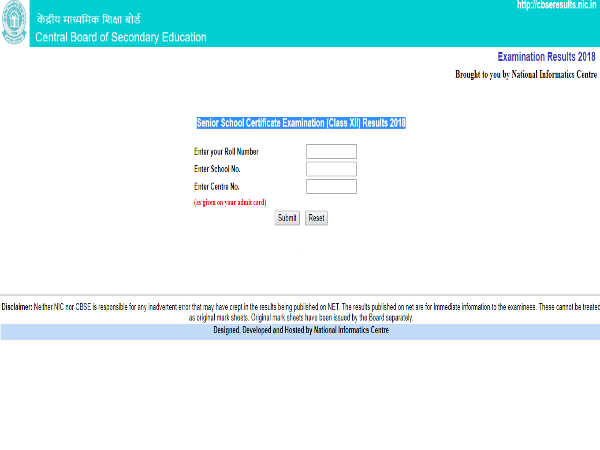 सीबीएसई 12वीं की बोर्ड परीक्षा के रिजल्ट का बेसब्री से इंतजार कर रहे है छात्र- छात्राओं के लिए खुशखबरी है। जी हाँ सीबीएसई ने आज 12वीं बोर्ड परीक्षा का रिजल्ट घोषित कर दिया है। अगर आप रिजल्ट देखना चाहते है तो ऑफिसियल वेबसाइट पर जाकर अपना रिजल्ट चेक कर सकते है। रिजल्ट देखने के लिए आपको http://www.cbseresults.nic.in पर जाना होगा।