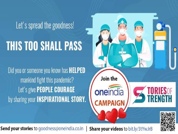 Oneindia Stories of Strength Campaign 2021: Coronavirus epidemic has caused worldwide outcry. There are reports of negativity and mourning everywhere. While it is important for everyone to remain optimistic in this difficult time. Many people have also set the example of humanity and goodness in this epidemic. Who are helping people selflessly all the time.Oneindia 'stories of strength' campaignThe online news platform Oneindia is also one of these. Which is providing a platform for people to put their positive thoughts to help people in this negative time. Oneindia has started an initiative called 'Stories of Strength'. In which everyone affected by the current scenario can share their story. Which will be highlighted on social media, video and Dailyhunt.Can also send your thoughts in the videoIn such a situation, if you are also doing positive work in negative time, then you can send the story of your experience, thoughts and work to Oneindia, which it will publish after confirming on its online platform. Also, if you wish, urge people, family, friends and neighbors around you to write about their experience or post a video.Here is the link to share your story on OneIndia:Video Upload Link: http://bit.ly/3tYwJrBStory ID: goodnessoneindia.co.in