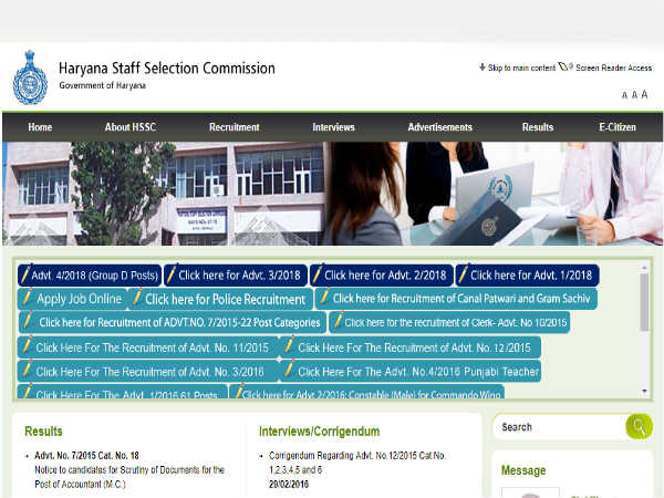 सबसे पहले हरियाणा स्टाफ सिलेक्शन कमीशन की ऑफिसियल वेबसाइट http://hssc.gov.in पर जाएं।