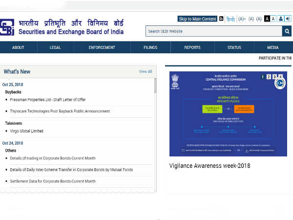 सबसे पहले सेबी की ऑफिसियल वेबसाइट https://www.sebi.gov.in पर जाएं।