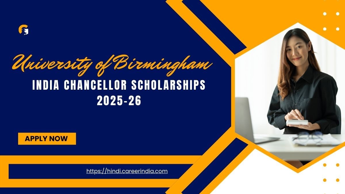 यूनाइटेड किंगडम की प्रसिद्ध University of Birmingham ने भारतीय छात्रों के लिए India Chancellor's Scholarships 2025-26 की घोषणा की है। इस स्कॉलरशिप कार्यक्रम के तहत भारत के 15 होनहार छात्रों को पोस्टग्रेजुएट शिक्षा के लिए £6,000 (लगभग ₹6,50,772) की राशि ट्यूशन फीस में सहायता के रूप में प्रदान की जाएगी।